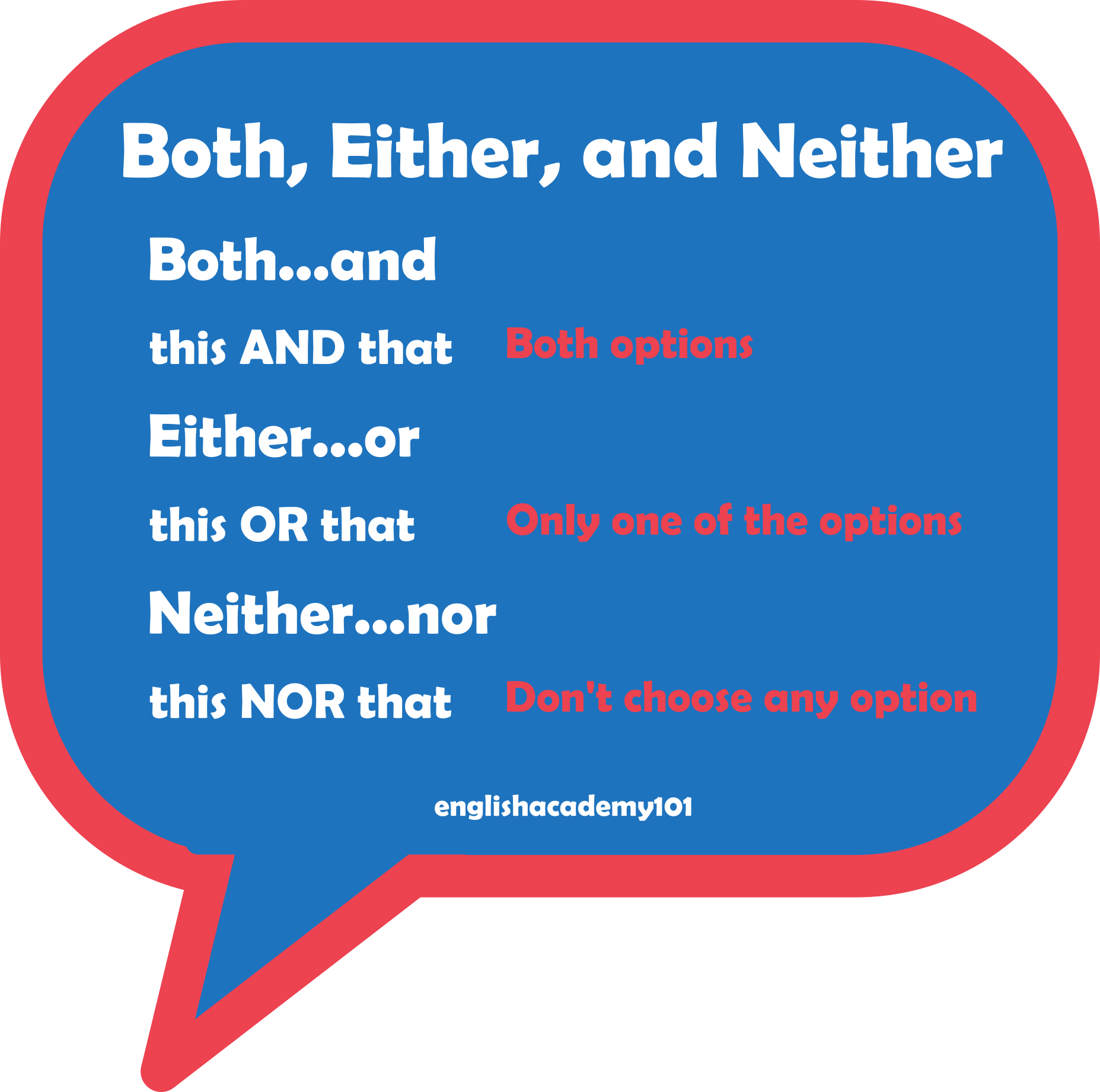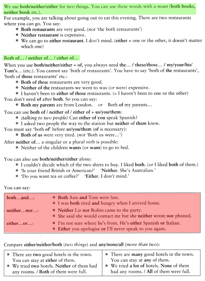 4 she's both intelligent and witty. Either and neither in negative sentences. Either and neither download this explanation in pdf here. Either my brother or my mum look looks after our cat when we're away on holiday.; 7 neither of them came to our party. But it also serves in the same way for both, which is usually plural. 25.05.2016 · as a subject, "either" is singular. 8 i want to buy both bags! 2 she speaks neither spanish nor french. Either my brother or my parents looks look after our cat when we're away on holiday.; Neither the manager nor his assistants is. It's the opposite of "both," and refers to one at a time: According to context (and to the grammar book you consult), they can be considered as quantifiers, adjectives, pronouns, correlating coordinators or adverbs.